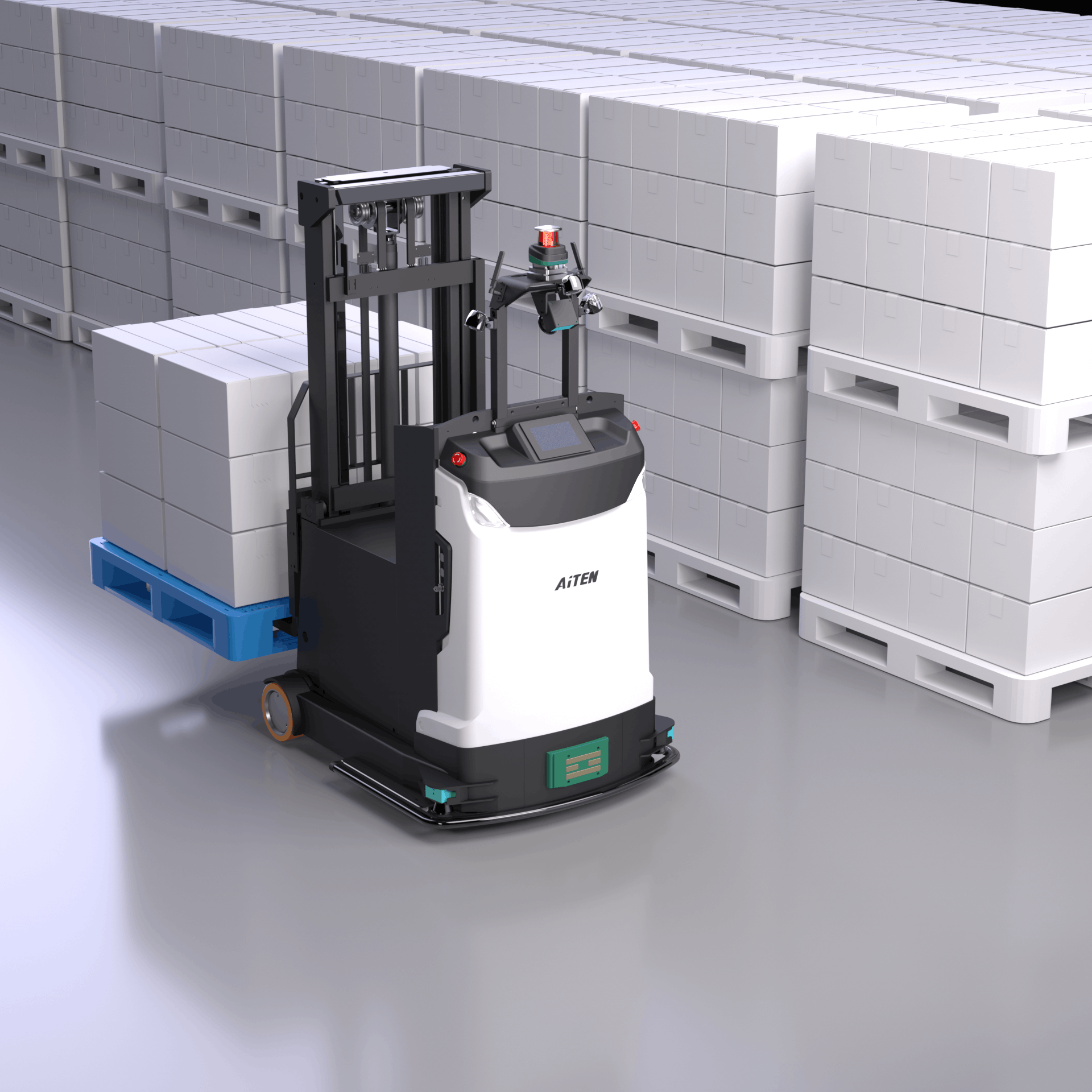 入库搬运:当货物到达仓库时,无人叉车可自动识别货物托盘或货架信息,准确叉取货物,并按照预设路线将货物搬运至指定的入库存储区域,实现高效、准确的入库操作,减少人工搬运的时间和人力成本。