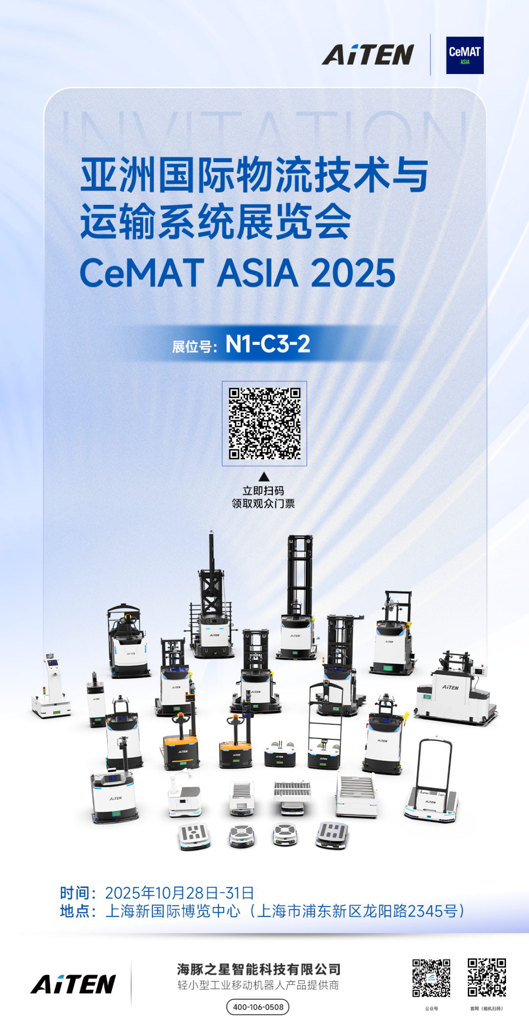 亚洲物流科技盛会——CeMAT ASIA 2025 即将如期而至。我们谨代表 AiTENhuatihui机器人,诚挚地邀请您莅临我们的展位,共同见证智能物料处理技术的创新力量,携手探索高效未来的无限可能。